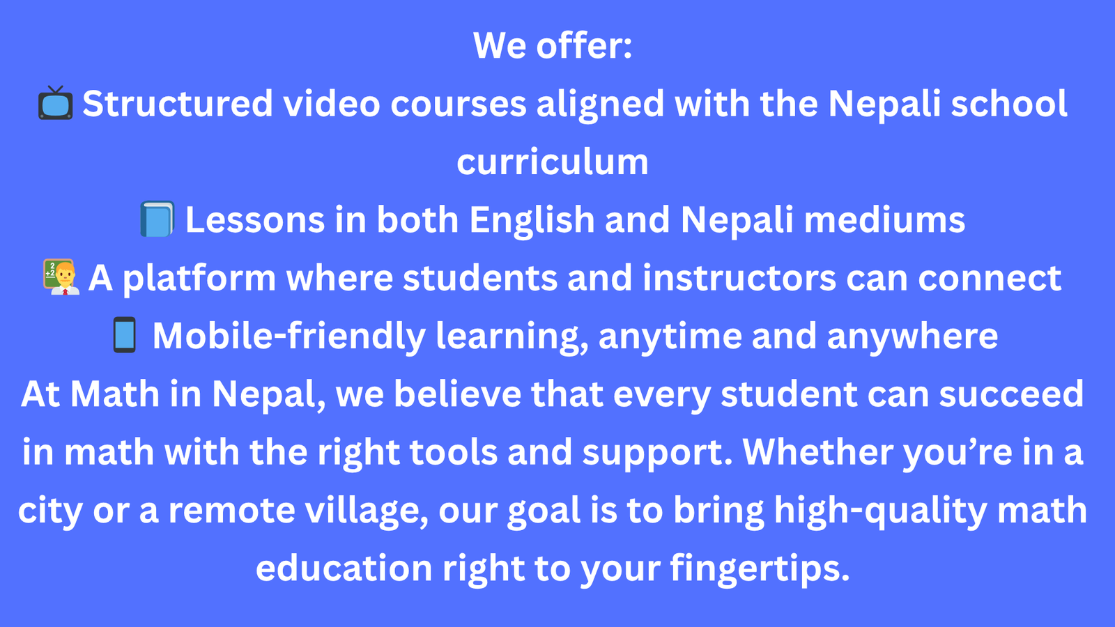 A dedicated platform for video-based mathematics learning designed specifically for Nepali students.